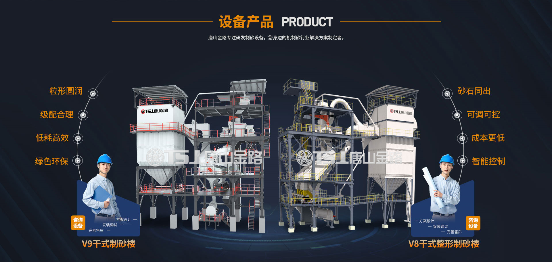 唐山金路作為一家集研發(fā)、生產(chǎn)、銷售、服務(wù)于一體的制砂機械設(shè)備企業(yè),一直致力于環(huán)保型破碎制砂設(shè)備的研發(fā)與生產(chǎn),現(xiàn)建有年產(chǎn)100萬噸的機制砂生產(chǎn)實踐基地。公司自主研發(fā)的V8干式整形制砂樓、V9干式制砂樓,具有綠色環(huán)保、能耗低產(chǎn)量高、智能控制等特點,產(chǎn)出的機制砂級配合理、粒形圓潤,是制砂生產(chǎn)企業(yè)的理想產(chǎn)品。
