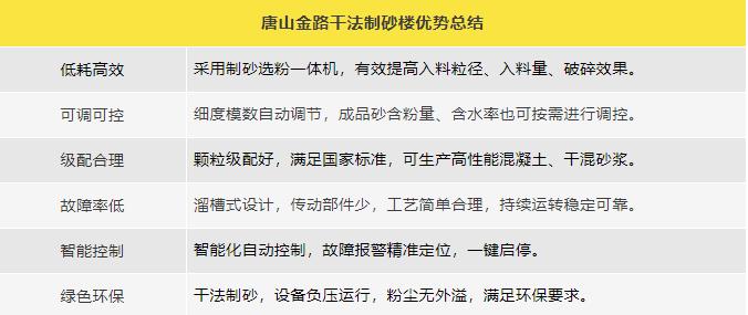 唐山金路作為一家集研發(fā)、生產(chǎn)、銷(xiāo)售、服務(wù)于一體的制砂機(jī)械設(shè)備企業(yè),一直致力于環(huán)保型破碎制砂設(shè)備的研發(fā)與生產(chǎn),現(xiàn)建有年產(chǎn)100萬(wàn)噸的機(jī)制砂生產(chǎn)實(shí)踐基地。公司自主研發(fā)的V8干式整形制砂樓、V9干式制砂樓,具有綠色環(huán)保、能耗低產(chǎn)量高、智能控制等特點(diǎn),產(chǎn)出的機(jī)制砂級(jí)配合理、粒形圓潤(rùn),是制砂生產(chǎn)企業(yè)的理想產(chǎn)品。